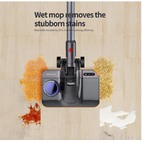 The Hygieia electric wet and dry T6 mop transforms your dyson into a premium all in 1 cleaning tool. The mop attaches easily to most dyson models above a V7, and effortlessly glides on all hard floor surfaces to vacuum, mop and scrub in one pass, lifting stubborn grime and dirt off your floor and leaving your floors sparkling.