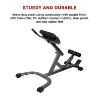 Crafted from heavy-duty steel tubing, this Roman chair is built to take whatever you dish out even if you work out every day. Its easy-to-adjust pad angle and frame length accommodate a wide variety of users and workout types. Foam rollers, rubber handles, a seat pad and sturdy footrests provide a safe, comfortable piece of equipment for your daily exercise regimen. Don't wait to get started building your body for the beach season. Order your Roman chair today!