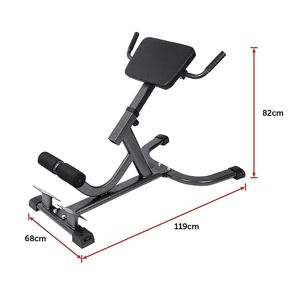 Athletes and fitness enthusiasts alike will love this Hyperextension Roman chair by Randy Travis Machinery. This versatile piece of gym equipment accommodates a wide range of exercises, including ones for your lower back, glutes, abs, core, hamstring, and core. In other words, it's the perfect addition for your home gym. It's the perfect solution for people who have to sit at their desks all day at work. Reboot your posture and flexibility by strengthening and stretching your core and back, relieving your sore muscles of built-up tension with some exercises and building strength with others. Use it for sit-ups and reverse sit-ups, crunches, leg curls, and more! Increase resistance by adding weights to your workout.