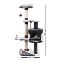 Your ever-active cat needs a place to let it be itself. And the i.Pet Cat Scratch Tree is just the perfect thing to cater to your feline friend's natural instincts. The 112cm tree features a cubby hole and platforms of various heights to allow your pet to jump, hop, skip, scratch, rest and nap to its heart's content. And as for its claws maintenance, the fully wrapped sisal 7.5cm thick covered poles are ideal for your pet to practice her daily regime of keeping its claws in good shape. Besides, it also helps to keep your pet off your expensive furniture too. Made from E1 standard board and natural sisal, the entire unit is both pet and eco-friendly with durable and longlasting qualities. Best of all, the tree is upholstered with a plush velvety surface for extra comfort and style.