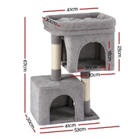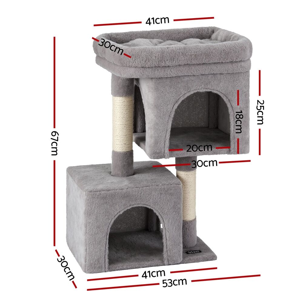 Built to satisfy the natural instincts of your precious pet, our i.Pet Cat Tree includes a host of nooks and crannies for your cats to have hours of fun scratching, hunting, climbing, jumping, hopping or simply lounging around. The tree is made from sturdy wooden construction and upholstered with a plush scent- and chemical-free velvety linen surface for extra comfort and style. The hanging and standing balls will keep your cat curious and alert. Natural woven sisal twine towers encourage your cat's scratching instincts while keeping your furniture scratch-free. Best of all, the firm base ensures that the tree remains a durable, solid-standing cat haven with total peace of mind for you. Can we hear a meow to that?