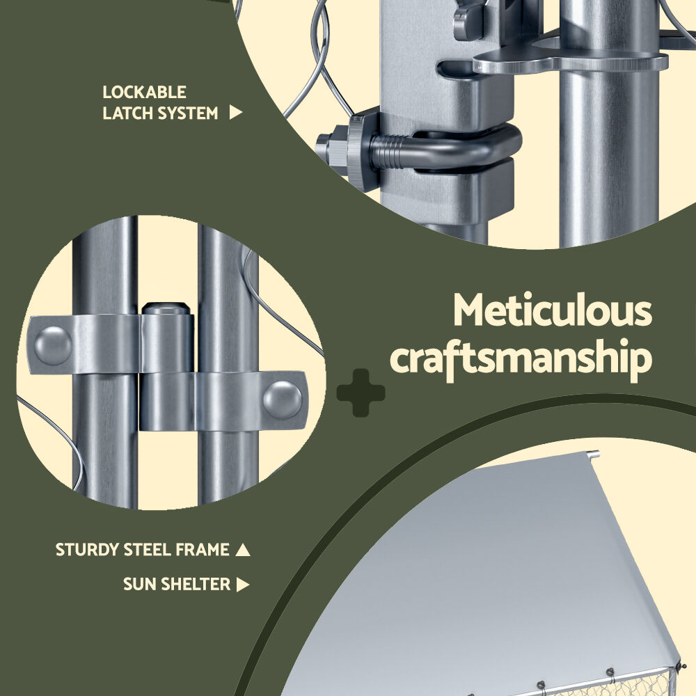 Keep your dog protected and entertained outdoors with the i.Pet Outdoor Dog Kennel. This kennel is designed to withstand any weather conditions, ensuring long-lasting use outdoors. Not only is this kennel spacious and comfortable, but it also boasts a durable structure with a solid steel frame, keeping your dog safe and preventing escape. The lockable system adds an extra layer of security. With a large entrance, you and your dog can easily enter and exit the kennel without hassle. And the best part? It's incredibly easy to install, making it a convenient choice for pet owners. Give your dog the ultimate outdoor sanctuary with the i.Pet Outdoor Dog Kennel!