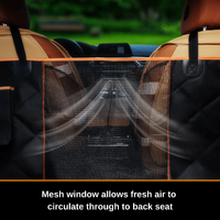Its unique mesh viewing window ensures that fresh air passes through to the back to keep your pup cool in summer and helps to reduce your pet's anxiety as backseat riders will be able to see their humans at all times. It contains side flaps that zip up and hook to the safety handles above car doors. Unzip and let the flap down when your dog jumps in or out and your doors will be kept clean and free of scratches.