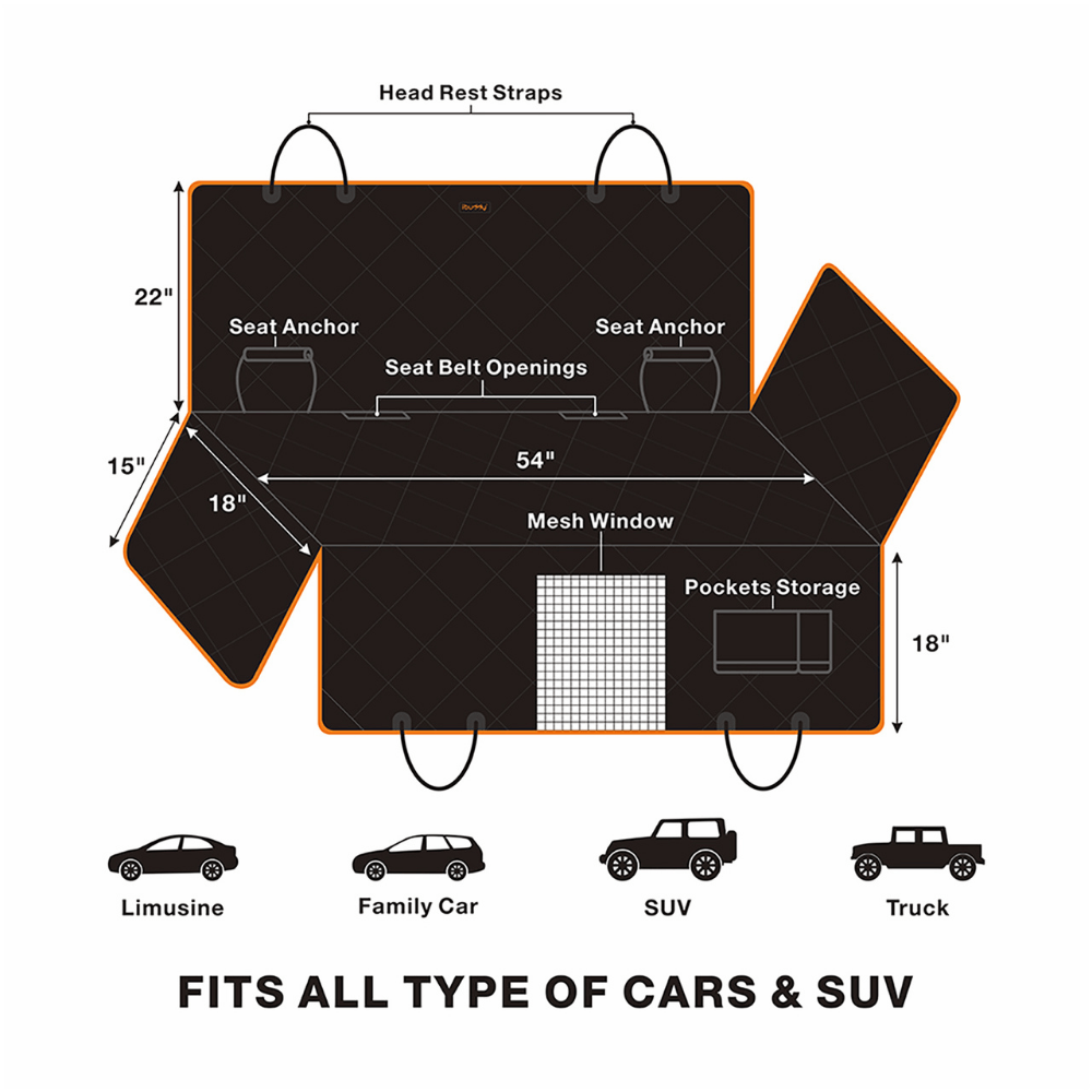 *Please note: This dog seat cover is made with waterproof materials however water will penetrate over time if left unattended due to the machine sewn fine needle holes.