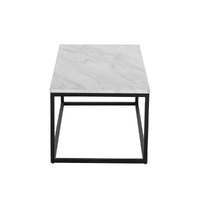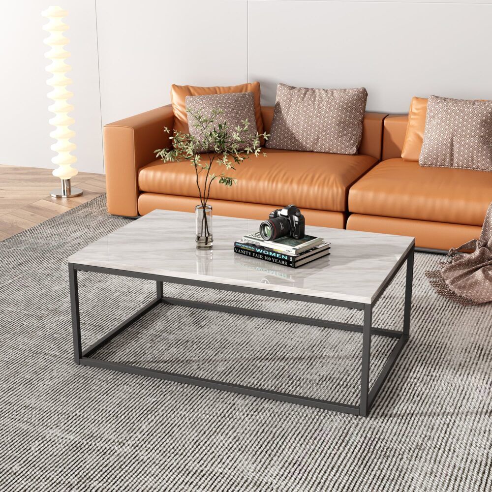 This coffee table is composed of a smooth marble table top and a solid steel base. The combination of the minimalist black and the pattern of the table top will show a distinctive personality in the environment. In addition, melamine laminated chipboard is used on the table top to ensure easy cleaning, while the steel frame of the base increases its robustness and stability. More ingeniously, the whole structure is a rectangular structure, and there is an anti-skid device beside each leg, which can not only ensure that it will not shake, but also protect the floor from scratches.It's really a good choice.