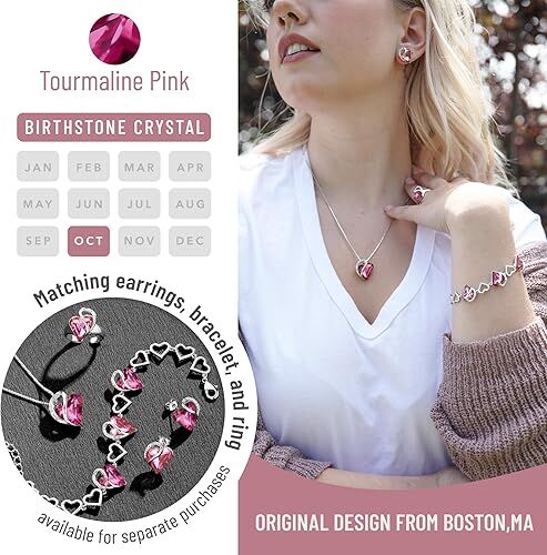 Infinity Love Heart Necklace, Birthstone Necklace for Women, Jewelry for Women with Healing Crystals, Allergy Free Pendant Necklace-10b-October-Tourma