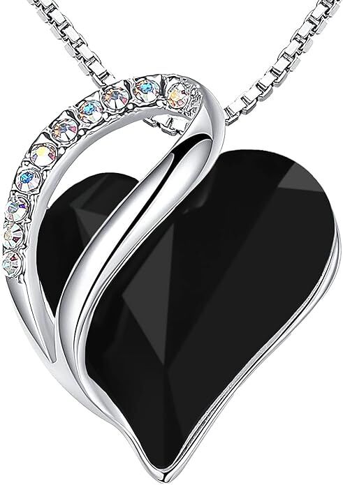 Infinity Love Heart Necklace, Birthstone Necklace for Women, Jewelry for Women with Healing Crystals, Allergy Free Pendant Necklace-13b-Protection-Jet