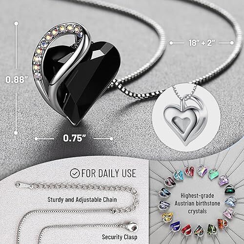 2.Exquisite Craftsmanship: Our heart necklace boasts a captivating 0.75 x 0.88-inch birthstone crystal with rhodium plating and an 18-inch chain. The meticulous design features a secure lobster claw clasp, making it a perfect jewelry gift for women.