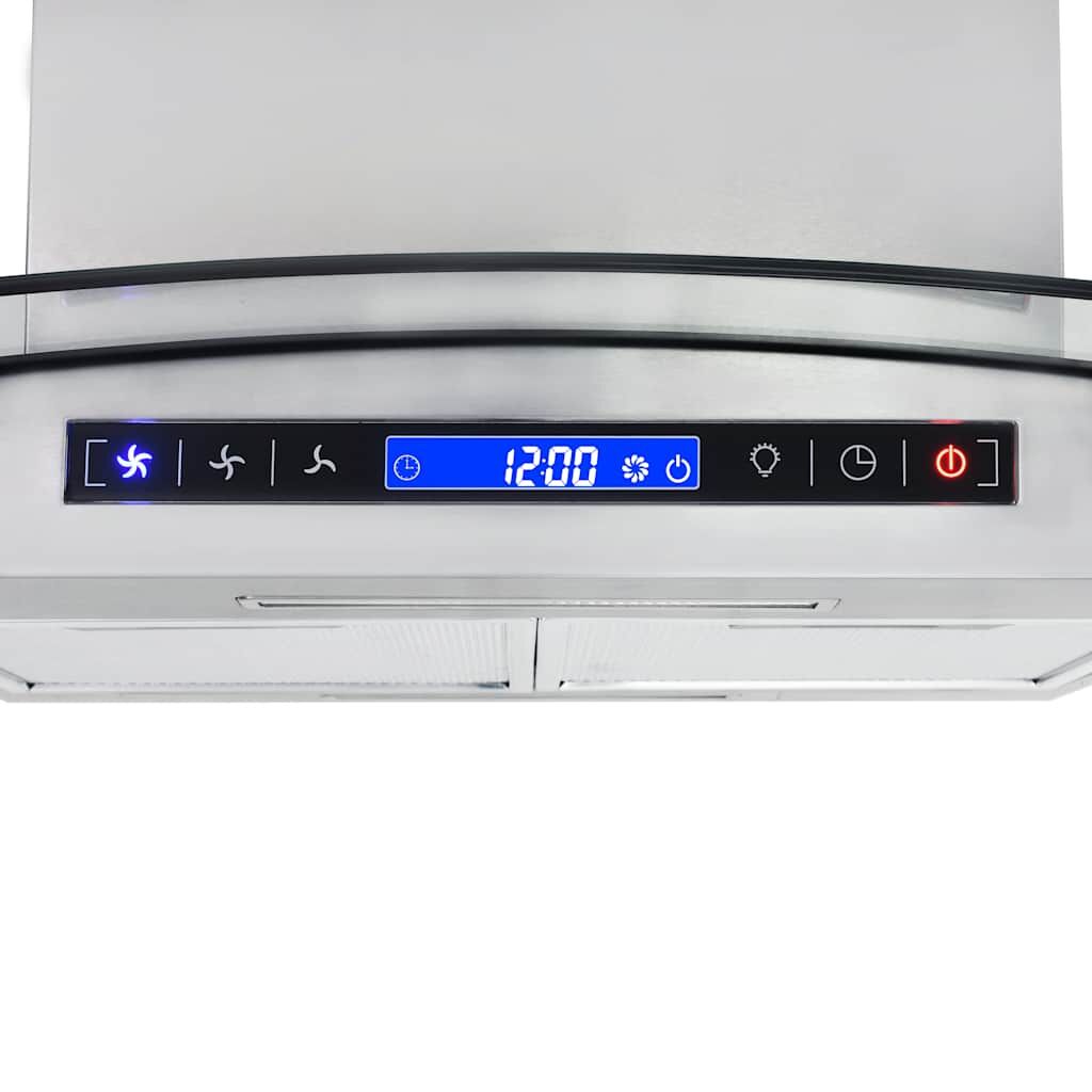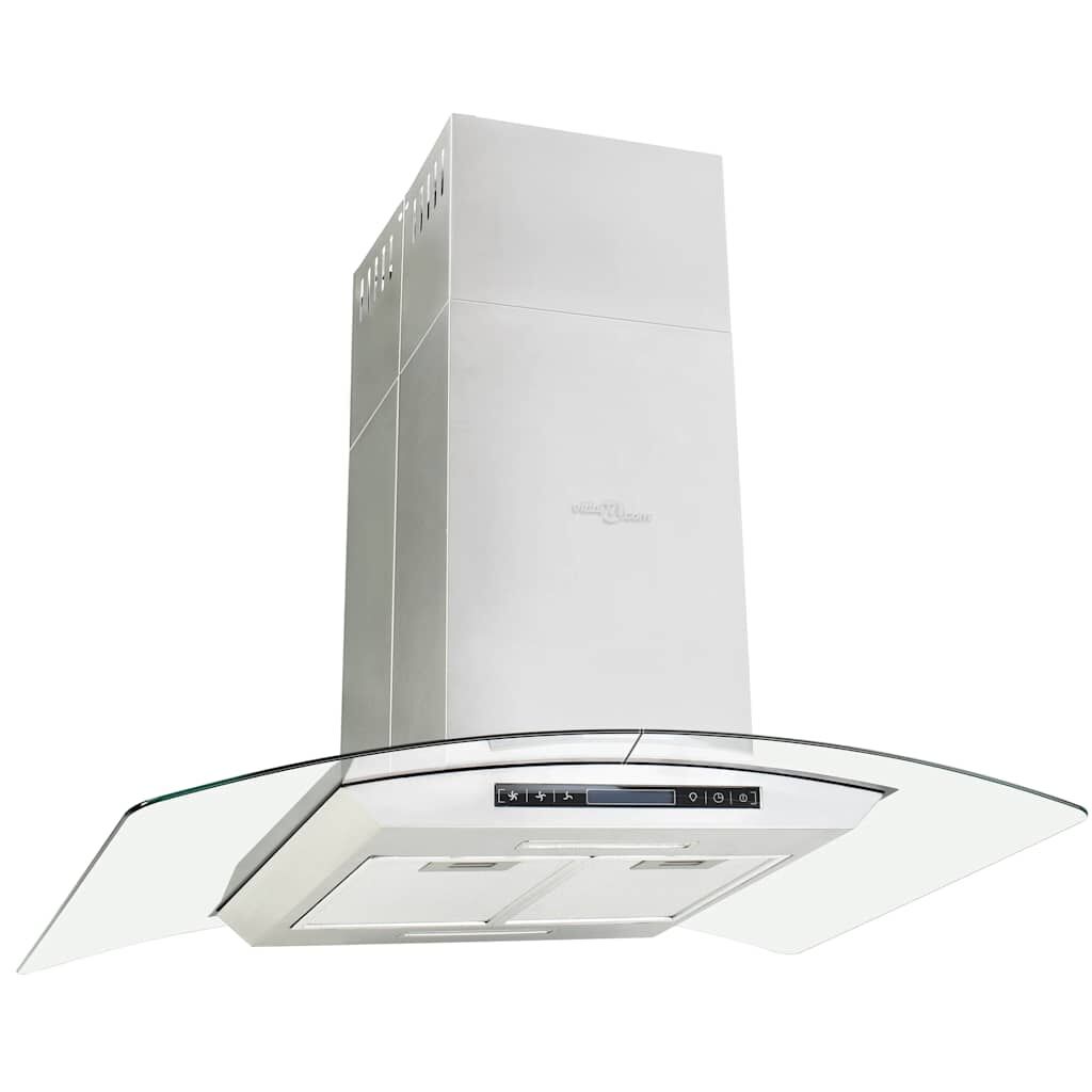 $664.99Our low-noise and powerful island range hood is ideal for effectively extracting smoke, grease, moisture and even heat from your kitchen. Its stainless steel housing is combined with a sleek, curved tempered glass canopy, giving your kitchen a stylish and modern look. This island hood is equipped with two 3-layer washable aluminium grease filters to protect the inside of the extractor hood and the exhaust pipe from grease. These built-in LED lights provide excellent illumination, to help with cooking and also to create a nice ambience in your kitchen. The extractor hood has 3 touch-sensitive speed buttons to ensure you have a full control over the extraction rate and a charcoal filter that will help purify the air and release the cleaned air back into the kitchen, whilst external extraction transfers cooking odours to outside with the help of the included exhaust pipe. Assembly is easy. The island hood fits well in an open kitchen with a cooking island as a standalone hood, but can also be used if you do not have a cooking island.