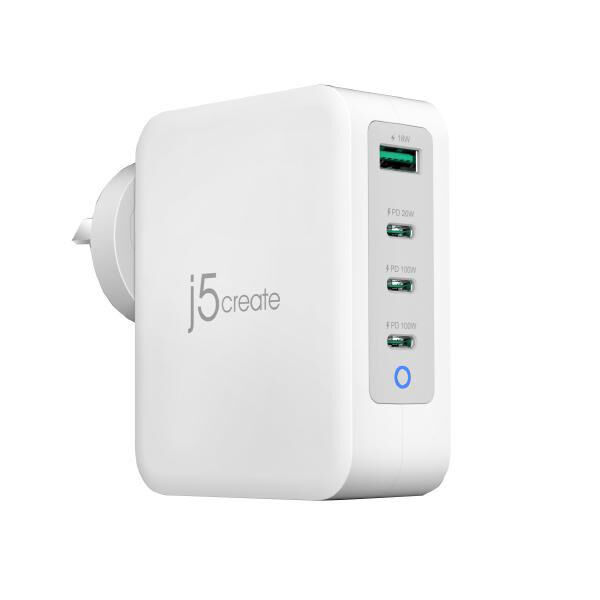 J5create JUP43130 130W GaN USB-C 4-Port Charger - (USB-C PDx 3, USB-A x 1 with Auto Balance Output) - Charge your phones, tablets, or laptops