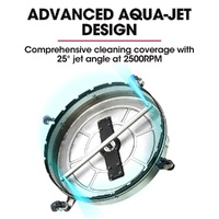 The Jet-USA has a stainless steel body with two nozzles spinning at 2500 RPM mounted on 3 corrosion-resistant castors for consistent coverage. Powered by up to 4000 PSI this heavy-duty cleaning disc delivers the outstanding results you've come to expect from Jet-USA.