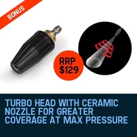 This feature-packed model includes a BONUS turbo wand, plus two BONUS premium scrub and rotary washer driven brushes ensuring youre armed with the right arsenal. The built in detergent injection system and assortment of 5 Pro Tip Nozzles and Commercial Turbo Head ensure that everything you spray and/or scrub comes up looking new!