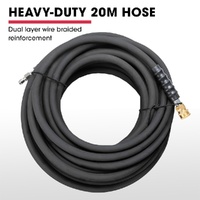 The hose is reinforced with industrial wire braiding and the generous 20 metre length reaches every inch of that roof or long driveway, all whilst maintaining huge pressure to get the job done. With rugged 13x5" oversized no flat wheels and strong yet lightweight balanced tubular frame you can easily work your way around the job site. The frame also features a removable top handle section that ensures that both transport and storage is easy.