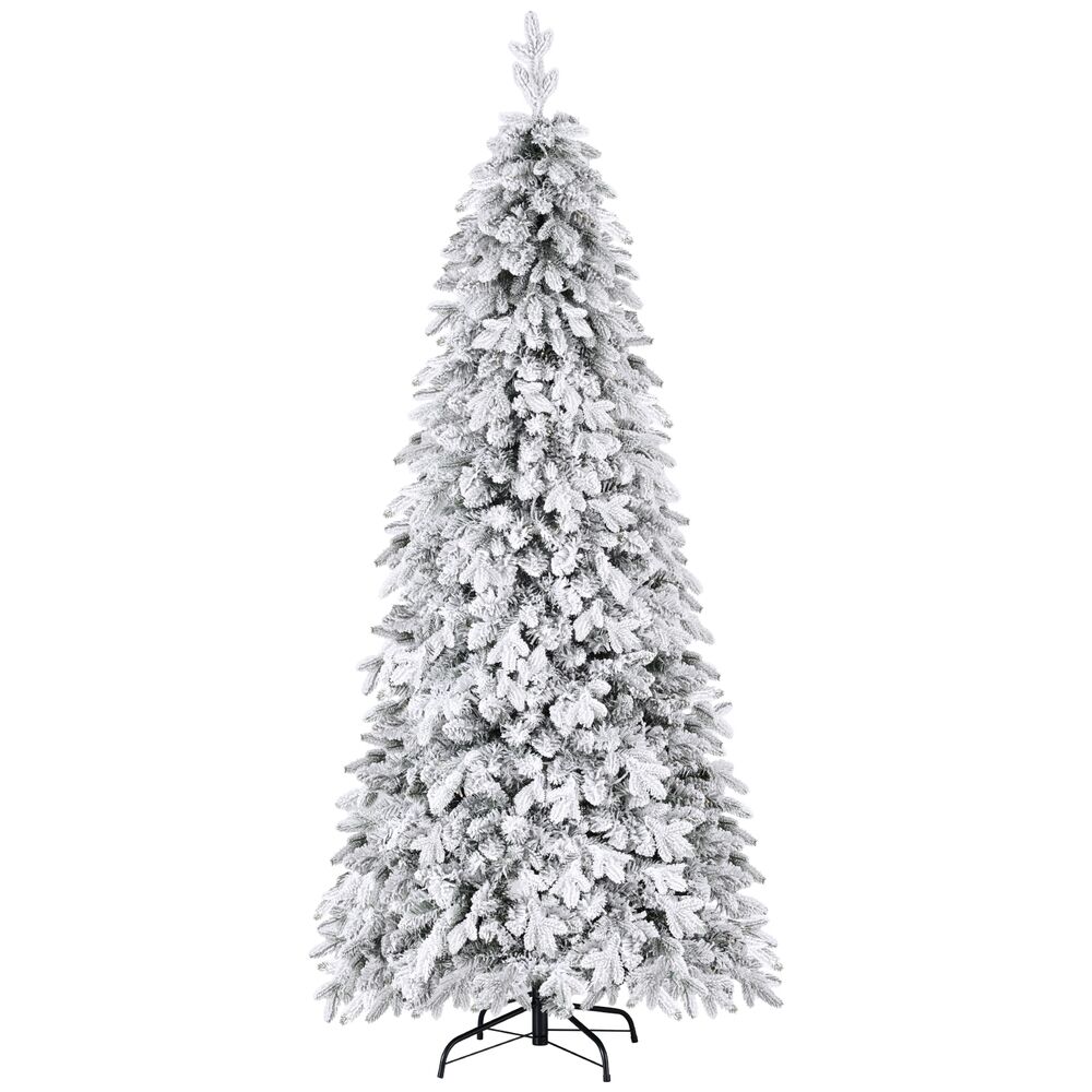 Elevate your holiday d��cor with our 7ft Snow Flocked Pencil Christmas Tree. Featuring 350 warm LED lights, this tree emits a mellow glow to create a cozy festive atmosphere. The 860 tips and a mix of PVC and PE leaves give it a lush, realistic appearance, while the slim pencil design fits perfectly in smaller spaces. A sturdy metal stand ensures stability, and the easy assembly with no tools required makes decorating hassle-free. Bring the beauty of winter indoors with this elegant, snow-dusted centerpiece!