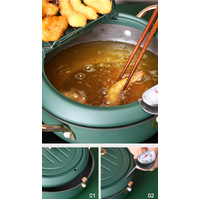 Justcook Kitchen Deep Fryer with a Lid is made of iron with an uncoated surface, it is more healthy and safe. There is a detachable oil drainage rack inside the lid and a deep stainless steel fry thermometer, it is easy for draining and keep oil fall in the pot and convenient to watch and real-time control the oil temperature.