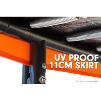 The pad is fitted with an 11cm PVC skirt which hangs down over the frame. This assists in locating the padding and also improves the appearance of the trampoline.