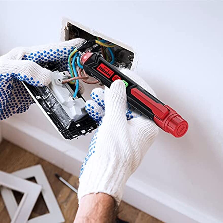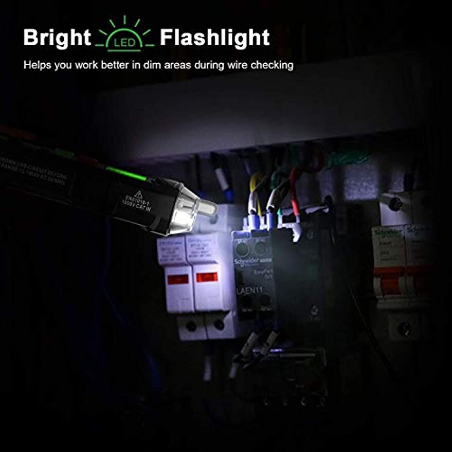 • NON-CONTACT: With NCV inductive probe for AC voltage; Just place the tip near a terminal strip, outlet, or supply cord. When the tip glows red and the pen beeps, you know there's voltage present. The live wire detector can automatically detect the live or neutral wire. Ideal for breakpoint Test. Handy circuit tester for electricians, homeowners.