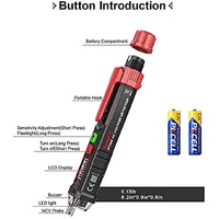 KAIWEETS HT100 Non Contact Voltage Tester AC Electricity Detect Pen 12V-1000V/48V-1000V Dual Range with LCD Display LED Flashlight Buzzer Alarm Wire B