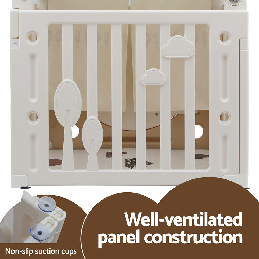Give your children the gift of creativity and imagination with the Keezi Kids Playhouse! Made from HDPE panels and durable polyester fabric, the playhouse is designed to last long hours of play both indoors and outdoors. Besides, the anti-slip mat increases stability and comfort. The door is equipped with breathable curtains which promote good air circulation inside the tent and allow parents to keep an eye on kids conveniently. Meanwhile, coming with a cute design gate, this play castle tent looks much more charming and dreamy, making it a wonderful gift for children and a perfect partner for learning and playing indoors. Easy to clean and maintain, you and your kids will love the convenience of the Keezi Kids Playhouse!