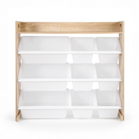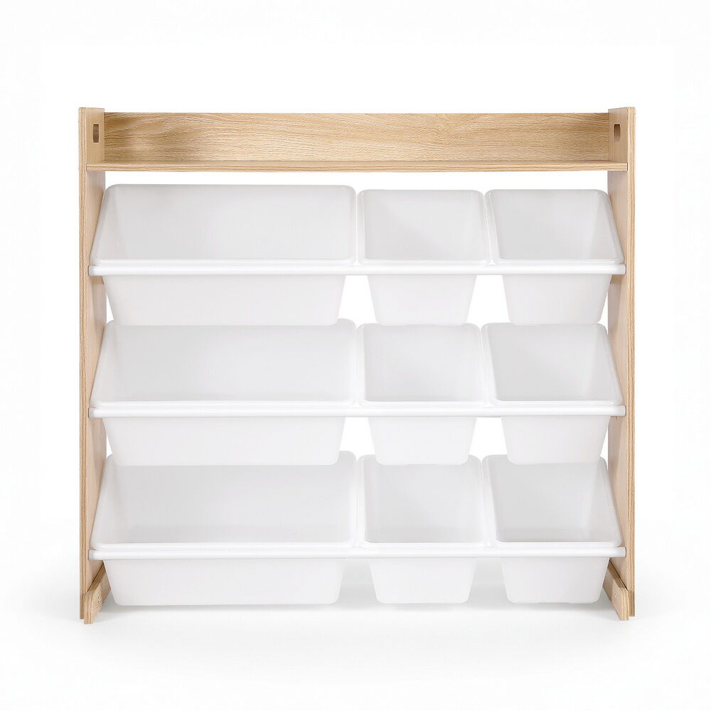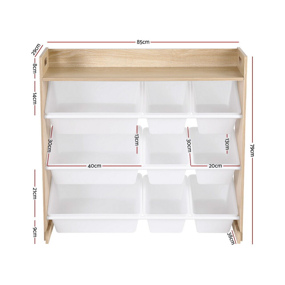 The Keezi Kids Toy Box Organiser brings cheerful organisation to any child's space with its practical 9-bin storage system. Featuring both large and small removable bins arranged across 3 tiers, an open shelf to display and storage, this unit makes tidy-up time fun and accessible for little hands. The child-safe design includes smooth rounded edges, comfortable handles and anti-tip protection, while the white and wooden finish complements most room décors. Perfect for storing toys, books, art supplies and more, this organiser helps develop good habits while keeping belongings neat and accessible.