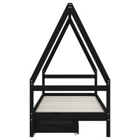 $185.95Create a fun-filled space for your little one with this fantastic wooden kids bed frame! Solid pine wood: The kids bed frame is made from solid pine wood. Solid pine wood is a beautiful natural material. Pine wood has a straight grain, and the knots give the material its signature, rustic look.Sturdy slats: The bed for kids has wooden slats for firm support, ventilation and stability.House bed design: This toddler bed is smartly designed with a house-style frame where you can hang bed curtains to create privacy for your kid.Storage drawer: The included storage drawers provide ample space for storing small toys, clothing and bedding, keeping the room tidy and clean.Considerate design: The height of the kids single bed is designed to be low to the ground, making it easy for your child to get in and out of bed.