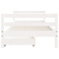 $214.78Dream a dream with this wooden kids bed frame. Featuring an elegant and timeless design, it is the perfect choice for your kids! Solid pine wood: The kids bed frame is made from solid pine wood. Solid pine wood is a beautiful natural material. Pine wood has a straight grain, and the knots give the material its signature, rustic look.Sturdy slats: The bed for kids has wooden slats for firm support, ventilation and stability.Storage drawer: The included storage drawers provide ample space for storing small toys, clothing and bedding, keeping the room tidy and clean.Functional headboard and footboard: The headboard and footboard of the toddler bed keep your mattress in place.Considerate design: The height of the kids single bed is designed to be low to the ground, making it easy for your child to get in and out of bed. Good to know:A mattress is not included with this bed. We do offer a various selection of mattresses. You can check our shop for a matching mattress.
