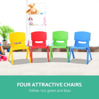 $70.67Made from HDPE plastic, the Chairs are designed to be durable and easy to maintain.The chairs can each carry up to 50kg weight maximum. That adds up to some hefty allowances for even the most weight-challenged kids.