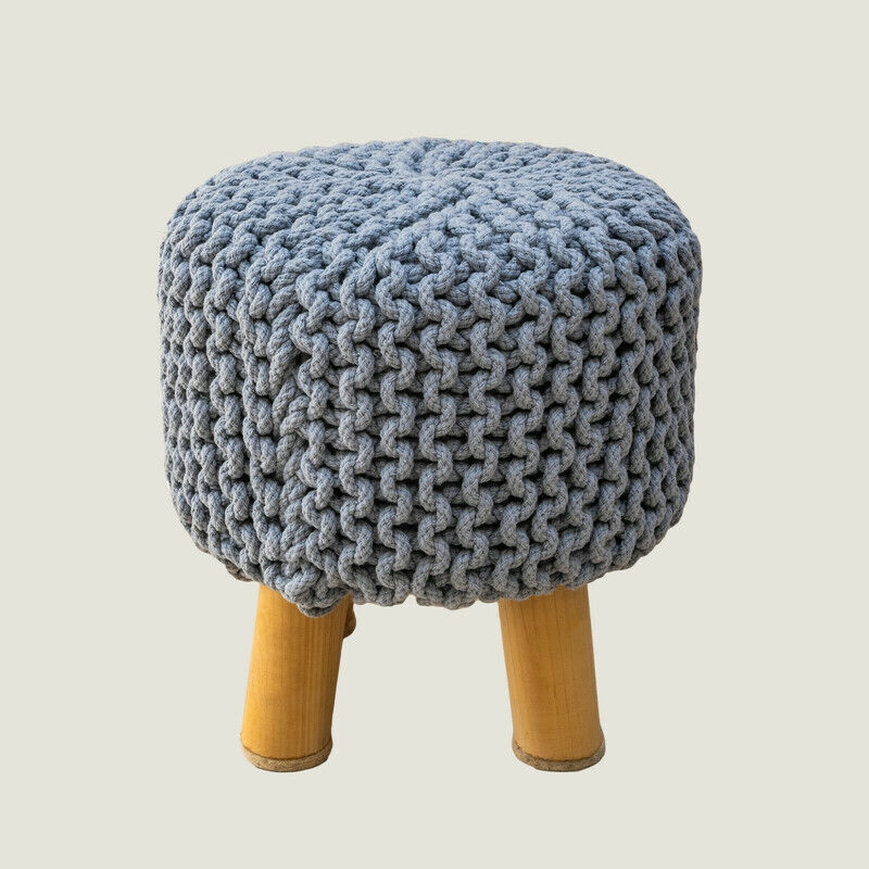 Find your comfort with this ottoman foot stool rest. This hand-knitted, cotton braided foot stool will add a warm and comforting design to your home. Its perfect size can act as a footstool, stool, kids stool, pouf, and sofa stool.