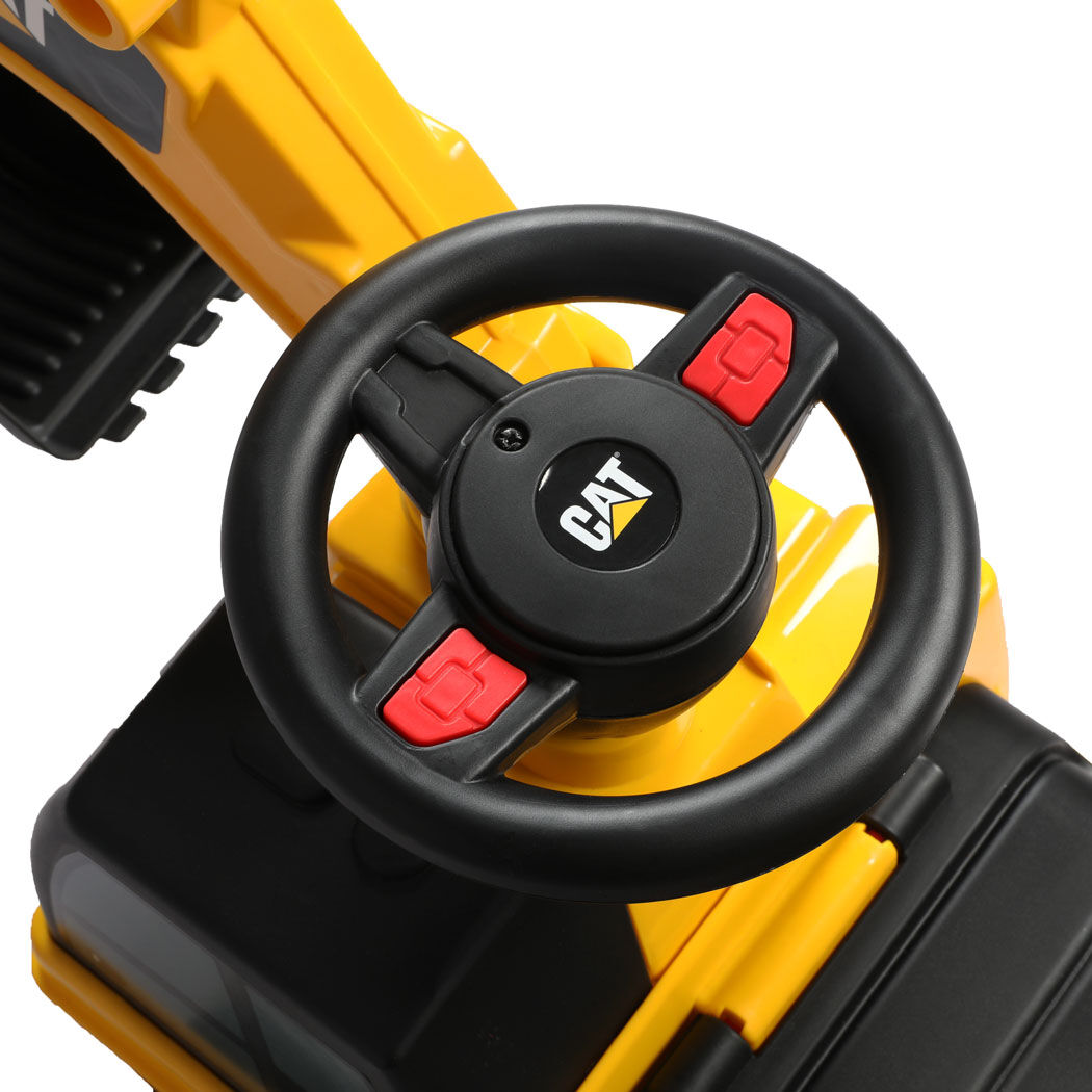 Let your child enjoy exploring both inside and outside with this CAT ride-on excavator, perfect for scooping up sand, mulch, toys, and treasures.