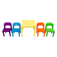 Crafted from colourful, water-resistant plastic, this play table is built to last. It's easy to assemble, easy to clean, and will hold up under even the roughest play. When the kiddies grow up, it's easy to disassemble and save until your kids have kids of their own. Even though this set is as tough as they come, it won't leave marks on your flooring, even if your kids decide to scoot their chairs across the floor. Make your kids' or grandkids' day get them this colourful kids' table and chairs today!