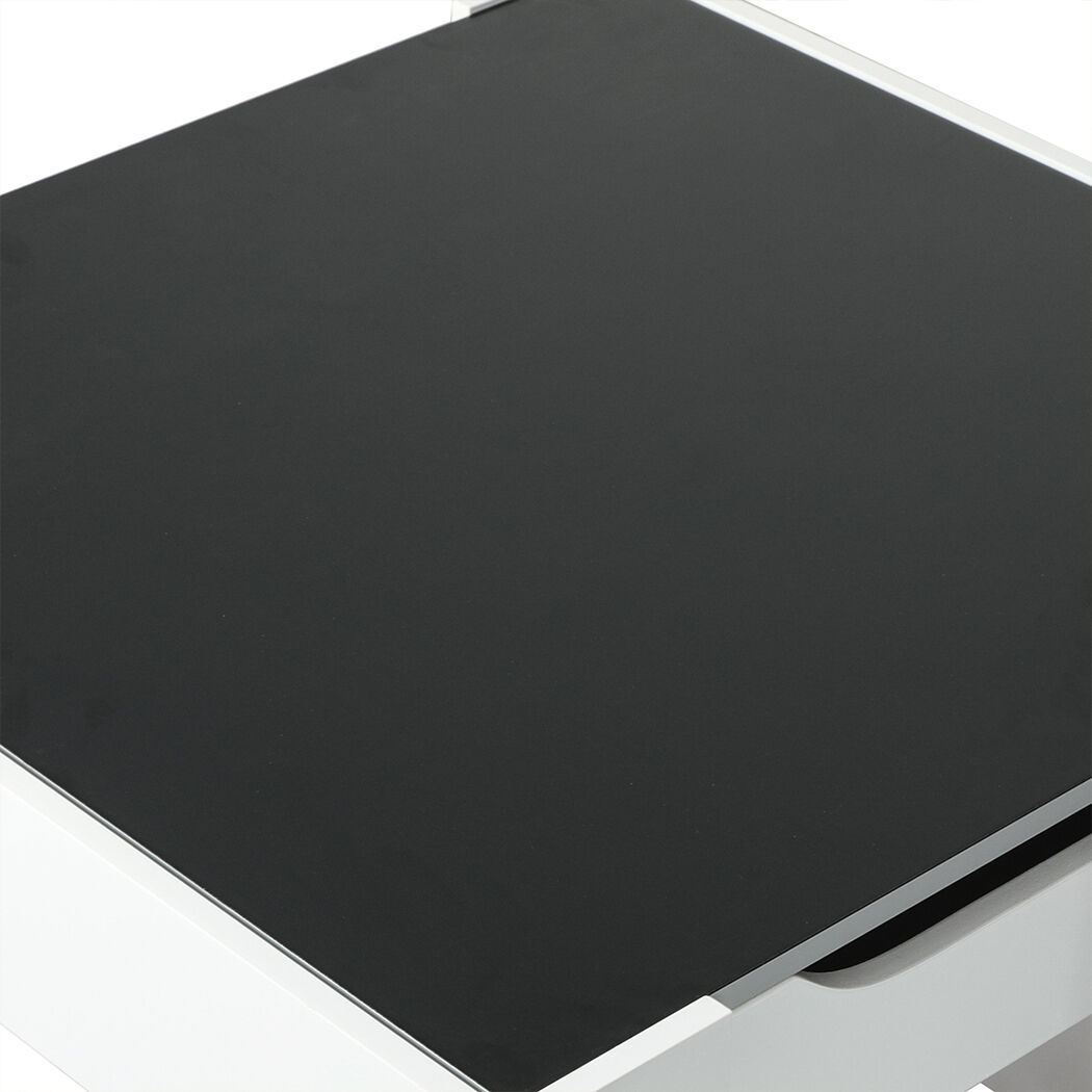 Your child?s table because their very own canvas. Flip it over, give them some chalk, and watch them create art on the blackboard. Wipe it down with a wet cloth to clean it up or just flip it over.