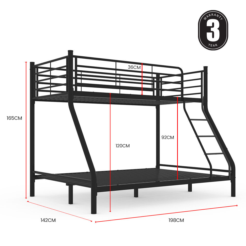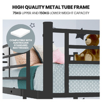 Thanks to its smart design combining a single bed frame over a double bed frameand with a 75kg upper and 150kg lower capacities it can provide many years of use as your family grows. It is compatible with standard Single and Double sized mattresses and designed and tested to meet stringent Australian standards.