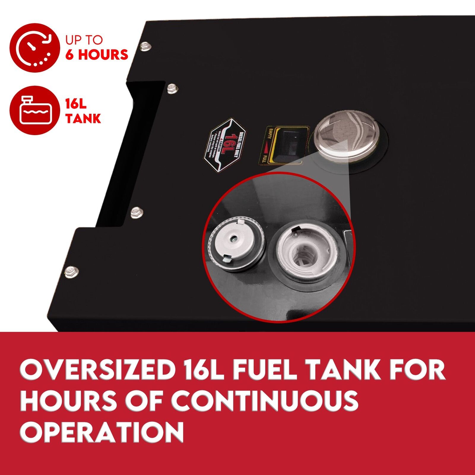 This generator can be wired into your home or business’ electrical system. Its 16L fuel tank can run unattended for up to 6 hours straight even when the main power is cut. With its patented super silent enclosure you will continue on powering the house without waking the neighbours. It also includes roller wheels for when transporting is required and can be removed for stationary purposes.