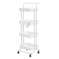 These trolleys are the largest and most spacious of the three styles. They usually feature four levels of storage, including a top surface, two middle shelves, and a bottom shelf. 4-tier kitchen trolleys are perfect for large kitchens or homes where space is not an issue. They are great for storing a large number of kitchen essentials and groceries.
