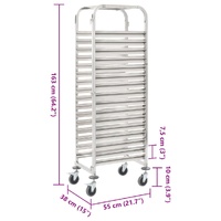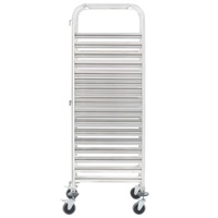 $279.89This kitchen trolley is designed for professional use in the catering area and provides a wide field of use. The trolley provides space for 16 trays which makes it possible to present ample storage space on smallest room. The stainless steel frame keeps the tray trolley stable and sturdy even at full load. Thanks to the smoothly-rolling castors, the kitchen cart can be moved around effortlessly and quietly. Additionally, two of the castors have brakes to prevent the cart from rolling away. The tray trolley is easy to assemble.