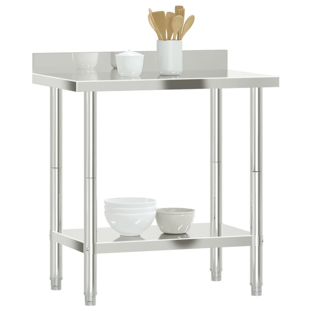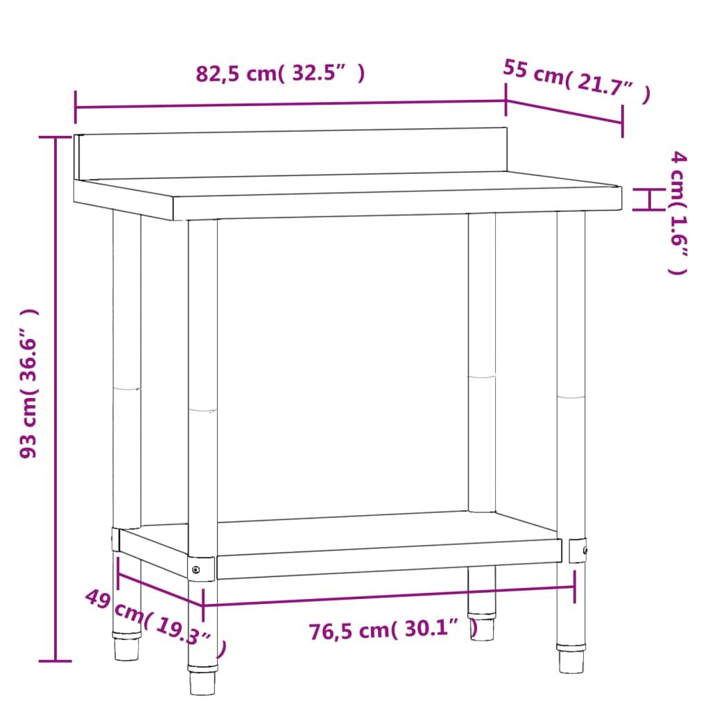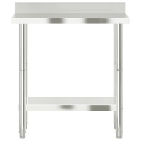 $181.30This kitchen work table is perfect for food prep and storage and is ideal for a kitchen bar, restaurant, school, as well as other commercial places. Durable material: The work table is made of durable stainless steel, providing resistance to corrosion and rust and ensuring years of reliable use. It is also easy to scrub and clean.Ample workplace: The stainless steel prep top is designed with a bottom shelf for customised storage space, providing ample storage space for your microwave oven, kitchen utensils, or any other tools you may need.Practical backsplash: The backslash effectively protects your walls from scratches and dirty water, ensuring a clean and tidy kitchen.Adjustable feet: The adjustable feet with a non-slip design ensure the kitchen prep table remains stable and will stay put, protecting the floor from damage. Warning:To prevent it from tipping over, this product must be used with the provided wall attachment device.