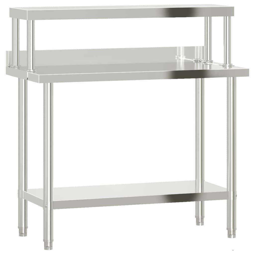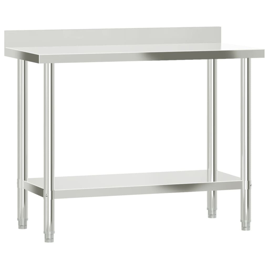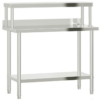 $334.79This kitchen work table is perfect for food prep and storage and is ideal for a kitchen bar, restaurant, school, as well as other commercial places. Durable and stable construction: The work table is made of stainless steel, providing resistance to corrosion and rust for years of reliable use. The smooth surface is easy to clean and maintain, ensuring a hygienic food preparation area.Ample workplace: The stainless steel prep table is designed with a bottom shelf and a overshelf for customised storage space, providing ample storage space for your microwave oven, kitchen utensils, or any other tools you may need.Practical backsplash: The backslash effectively protects your walls from scratches and dirty water, ensuring a clean and tidy kitchen.Adjustable feet: The adjustable feet with a non-slip design ensure the kitchen prep table remains stable and will stay put, protecting the floor from damage. Warning:To prevent it from tipping over, this product must be used with the provided wall attachment device.