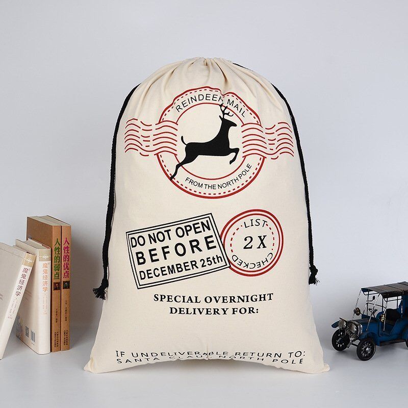 Large Christmas XMAS Hessian Santa Sack Stocking Bag Reindeer Children Gifts Bag, Cream - Reindeer Mail