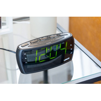 The huge 4.6 centimetre LED number display is efficiently visible while awakening and is also easy on the eyes with ‘hi/lo’ dimming options. Enjoy the eye-catching vibrant green LED display colour, set for you to start your day the right way. Its battery back-up power makes sure you’re always on time, even if a power shortage threatens your early morning start.