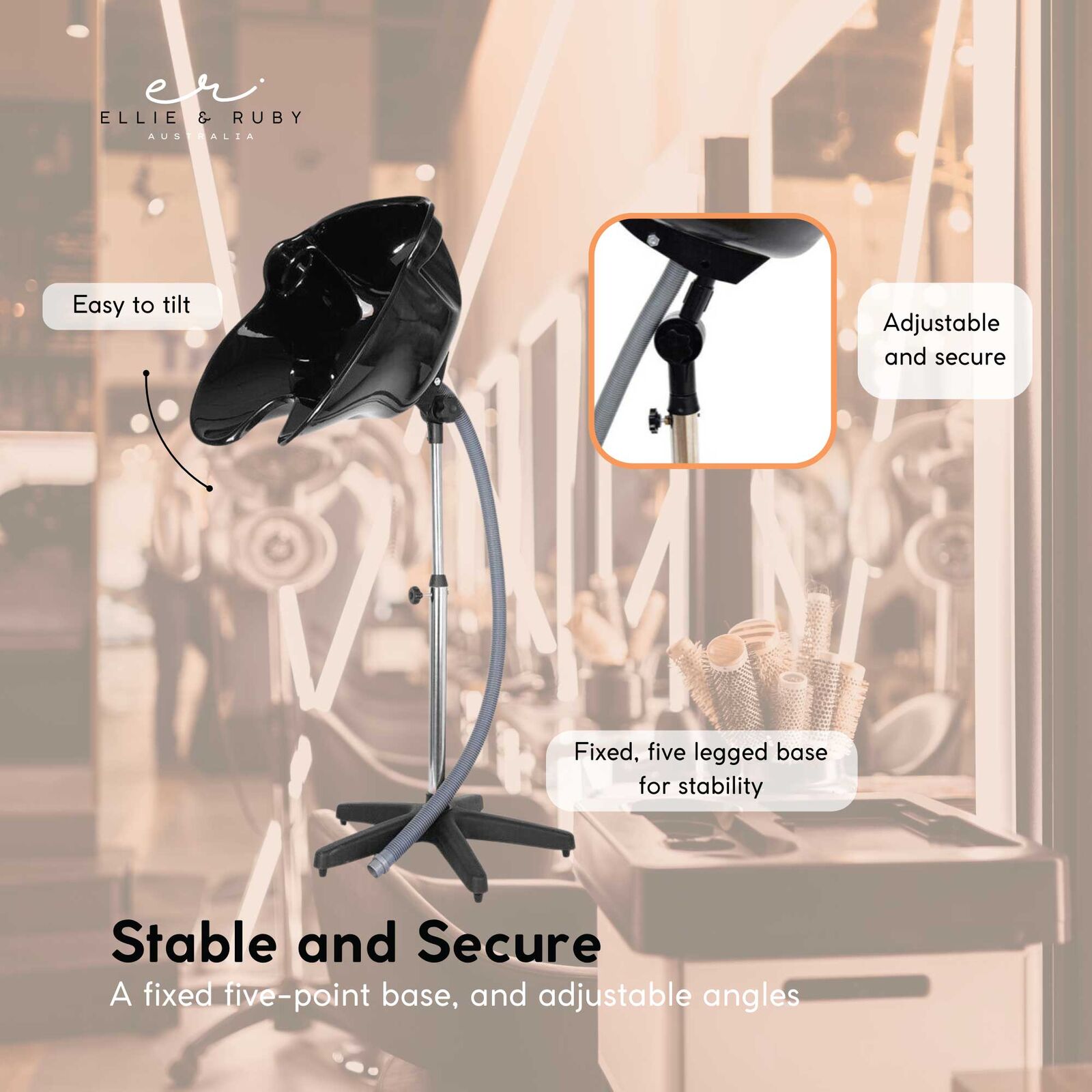 This piece of hairdressing equipment will bring practicality, style and convenience to your salon, whether it's mobile or not. The hair basin sits firm and stable on a five point base without wheels, to keep it from sliding around when you are washing a client's hair.