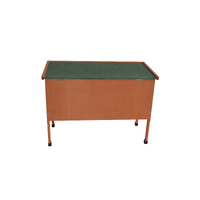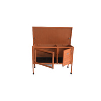 Single storey guinea pig/rabbithutchon legs, off the ground design. large access door with a lift up asphalt roof for maximum rain and heat protection.