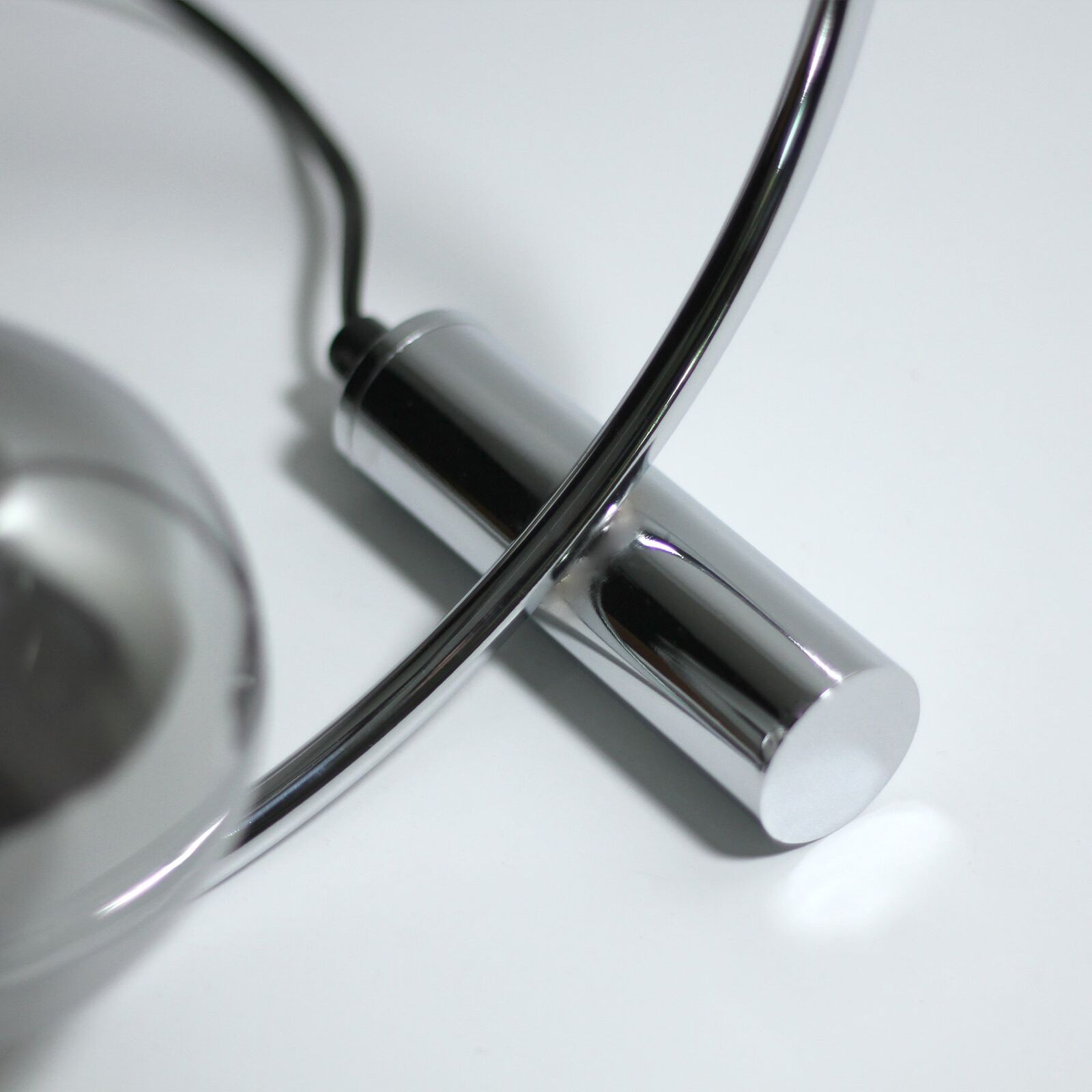 $35.09The Larique Table Lamp is a stunning chrome lighting piece that is artistically designed with style. The spectacular round metal frame is balanced with a short horizontal support rod that adds to the aesthetic of the lamp, while the two sphere glass shades finish it off to perfection.