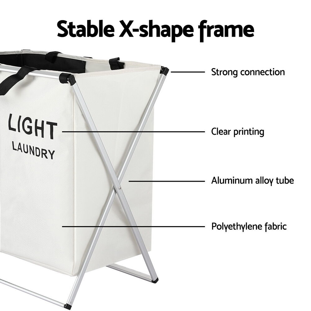 $26.05Get your laundry done effortlessly and without hassle thanks to the Artiss Sectional Laundry Basket. With 2 sections to separate dark, light and colour laundry, the basket not only has a large capacity but easily eliminates laundry mistakes no accidental staining. The laundry hamper features a robust and stable X-shaped frame made from aluminium alloy and hard-working fabric lining for long-lasting use. The hamper is conveniently designed to fold away at a moment's notice, so you can free up precious laundry space. You can also carry it around the house with the easy-to-use handle. Save time and effort while doing laundry with an Artiss Laundry Basket.