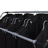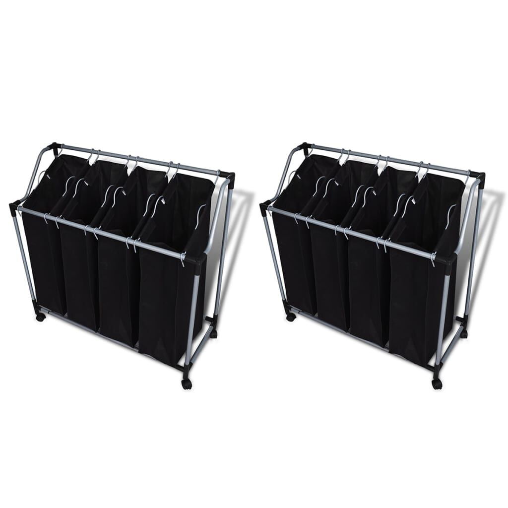 These 2 laundry sorters organise any laundry room, utility room or closet well, making it the perfect choice to meet your individual needs. One of each laundry sorters has 4 full-size sorting bags which can be easily removed to transport laundry using the steel carrying handles. Castors and handles on each end of the cart are ideal for facilitating movement. The durable steel frame supports large loads of laundry up to 20 kg. The product is also easy to assemble and maintain. Delivery includes 2 laundry sorters and 8 bags.