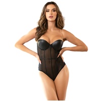 Leatherette and Chiffon Basque Bodysuit by My Secret Drawer®