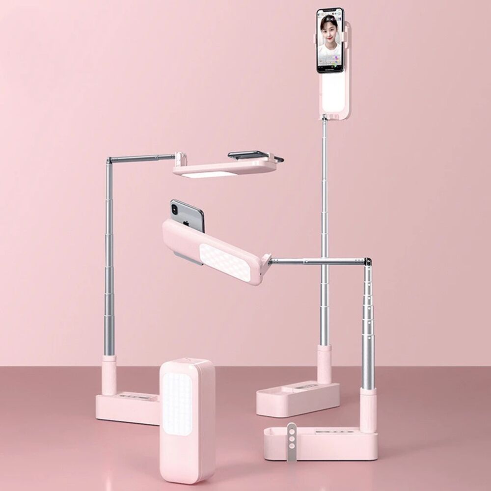 -Adjustable 360 Rotate: Height adjustable up to 130cm used as a floor stand or desktop selfie stand occasions. 360 rotate phone clamp and light board, easy to switch between different angles to match your shooting angle needs . The joint of the front holder is 90 bendable which supports overhead recording.