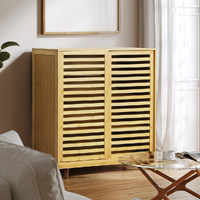 Levede Bamboo storage cabinet is humanized-designed with 4-tier accent shelf for display and blocked with door for storage function, making the full use of vertical space in corner & saving more floor space for other usage.
