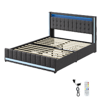 Integrated LED light strips on three sides of the headboard and an aluminum light channel at the foot of the bed enhance the ambiance. The lighting adds a stylish touch and provides practical illumination for a cozy atmosphere.