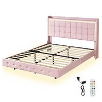 The headboard and footboard are equipped with LED light strips that support stepless dimming, and the lights come with a remote control for convenient brightness adjustment.