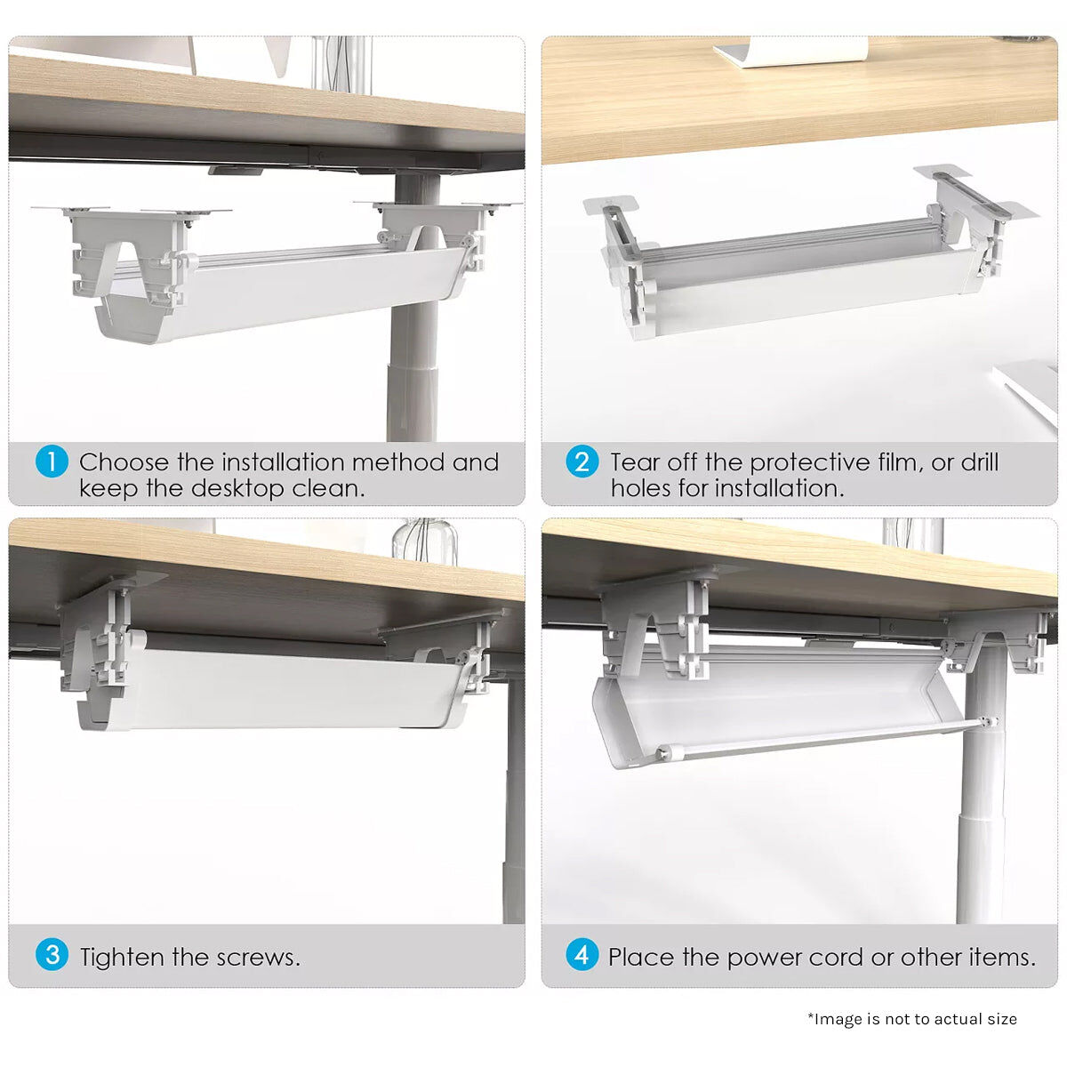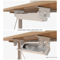 Keep your desk tidy and organised with the ErgoDesk Height Adjustable Under Desk Cable Management. The plastic cable tray can be easily attached underneath the desk, providing storage room for your cables with convenient access to power outlets and your devices. The encased design keeps your wires out of sight with opening on both ends allowing for easy routing.